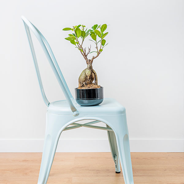 Ficus Ginseng no se trata exactamente de un bonsái, pero es una de las plantas más apreciadas por sus amantes. Se considera un híbrido ya que a pesar de ser de género Ficus y de pertenecer a la familia de las Moráceas, sus cuidados son prácticamente iguales a los de los bonsáis. Son pequeños arbustos de hoja perenne y de hojas redondeadas muy valorados por su resistencia. Ficus Ginseng rompe con la idea que tenemos de este tipo de árboles por su envergadura, pudiendo superar el metro de altura. Requiere de un ambiente húmedo con un riego de una vez por semana en periodo de crecimiento o en verano. Agradece un ambiente luminoso sin la intervención de luz directa, pues es la manera que tienen las Ficus Ginseng de generar sus raíces.